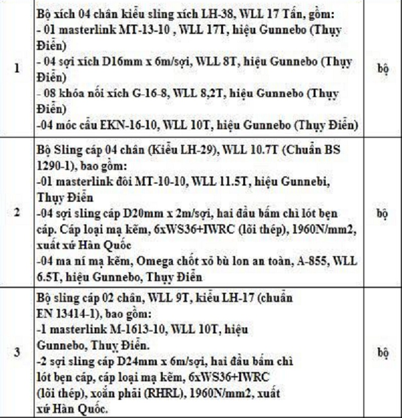 LÊ HÀ VINA PHÂN PHỐI SLING CÁP, SLING XÍCH, MA NÍ, DÂY CẨU HÀNG XUẤT XỨ THỤY ĐIỂN, HÀN QUỐC CHO CTY XD CVD – TP.HCM